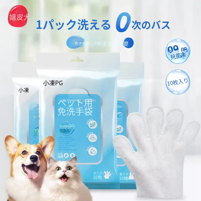 ペット用 猫ちゃん専用 洗浄手袋&ウェットティッシュ!お風呂不要で簡単清潔、犬猫のニオイもスッキリ!手軽に使えるペット用ウェットティッシュで、愛するペットをいつでも清潔に保ちましょう!