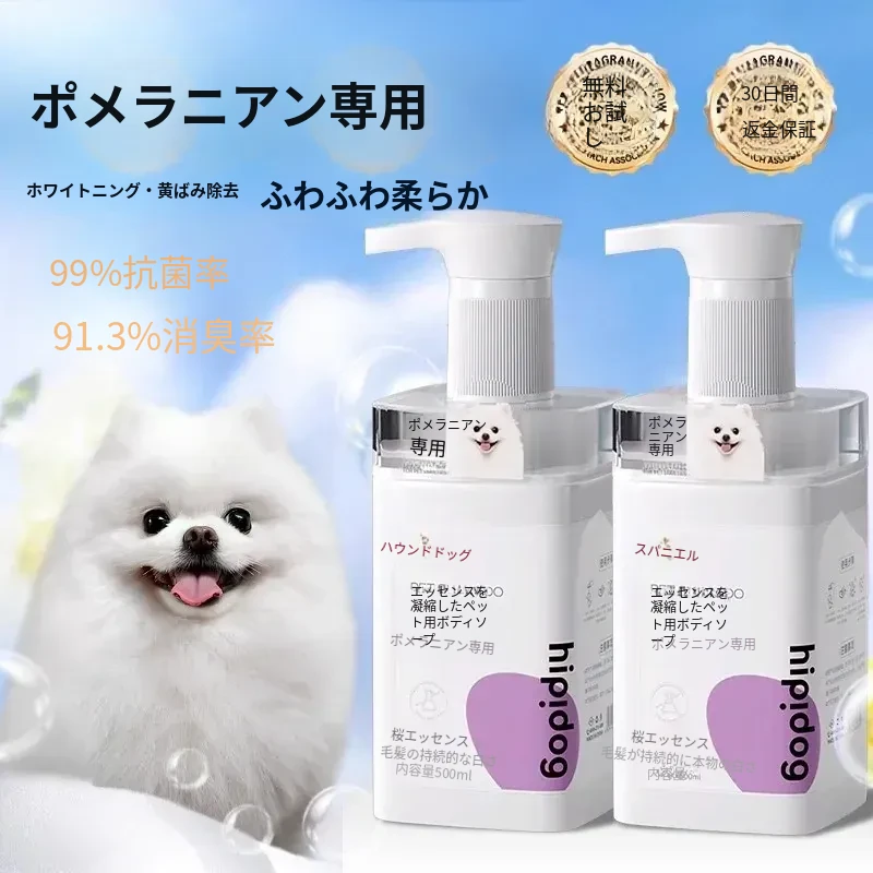 嬉しいヒッピー犬!サモエド専用ペット用シャンプー - 白い毛に最適な殺菌・消臭効果で、洗った後も美白&長続きする香りを実現。大切な愛犬をもっときれいに!