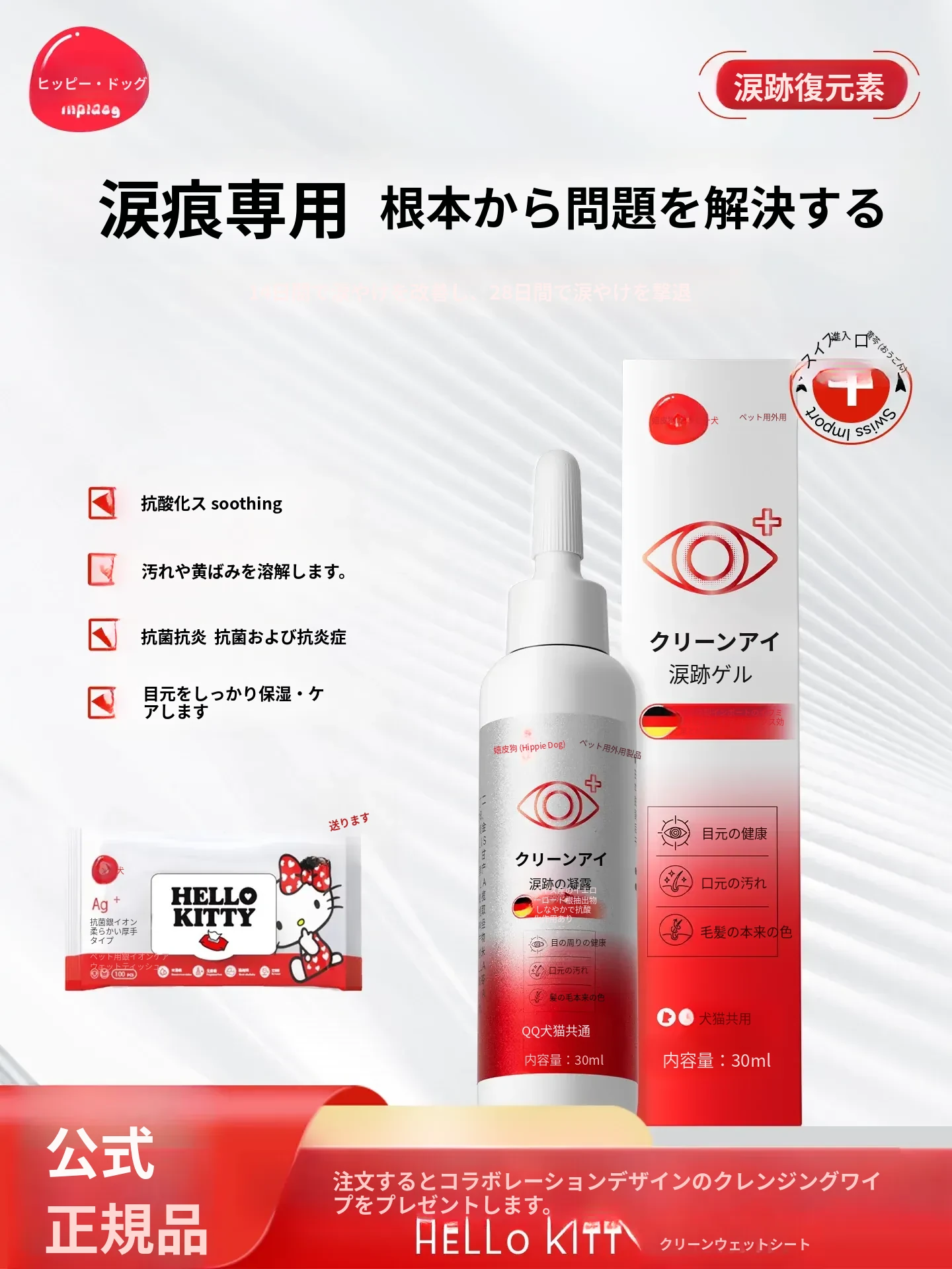 ヒッピー犬ペット涙痕クリーム 猫専用涙痕除去液!犬用ビションの涙痕もスッキリ清潔に!愛するペットの美しさを引き出す必須アイテムです!