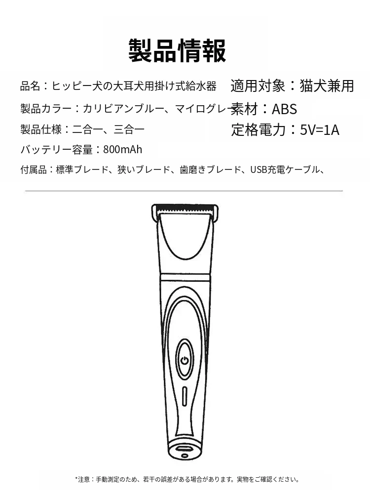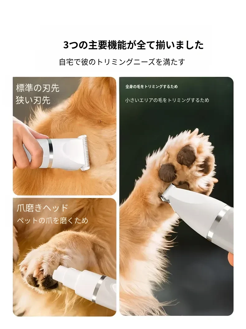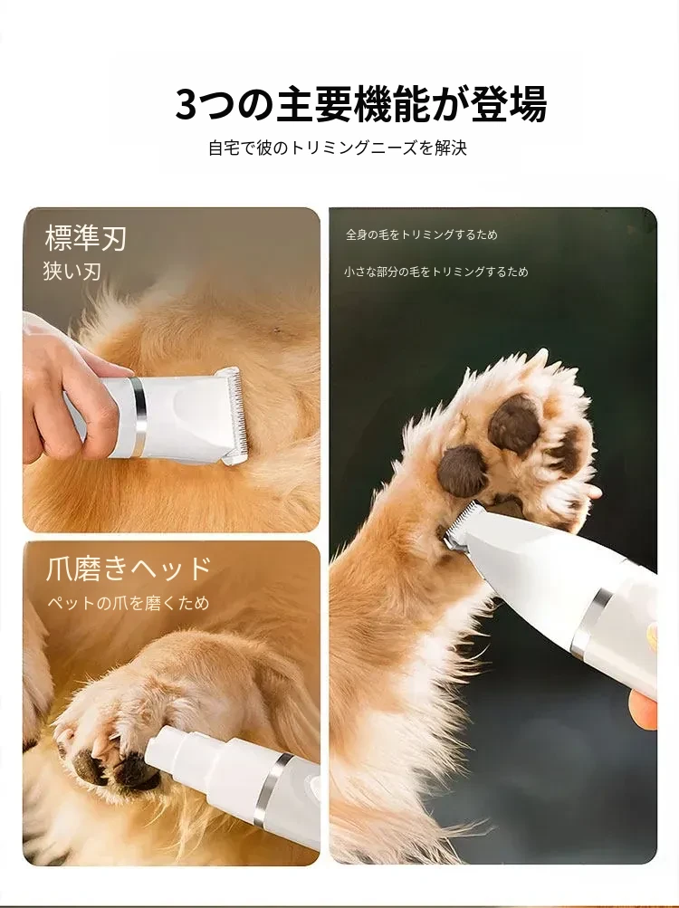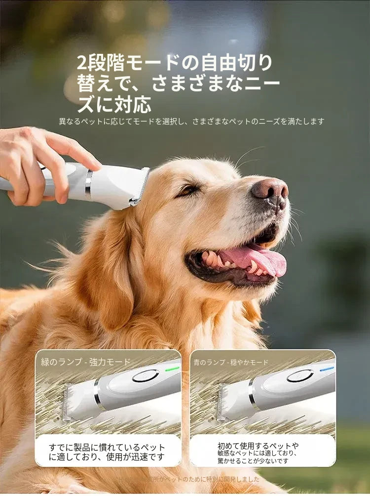 ペット用バリカン|犬猫専用電動毛剃り器|簡単・スムーズに毛をカット!愛犬や愛猫のお手入れが楽々!静音設計で怖がらずに使用可能!高性能でプロの仕上がりを実現!