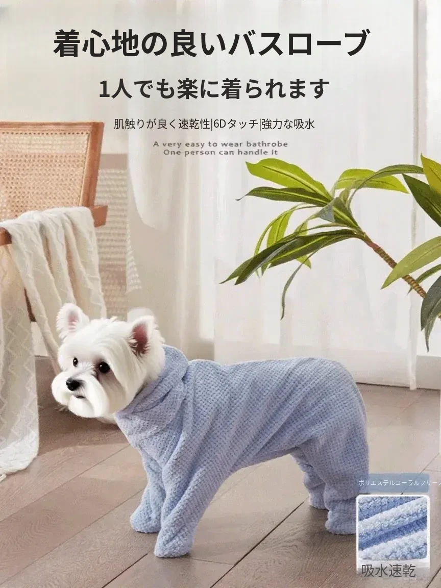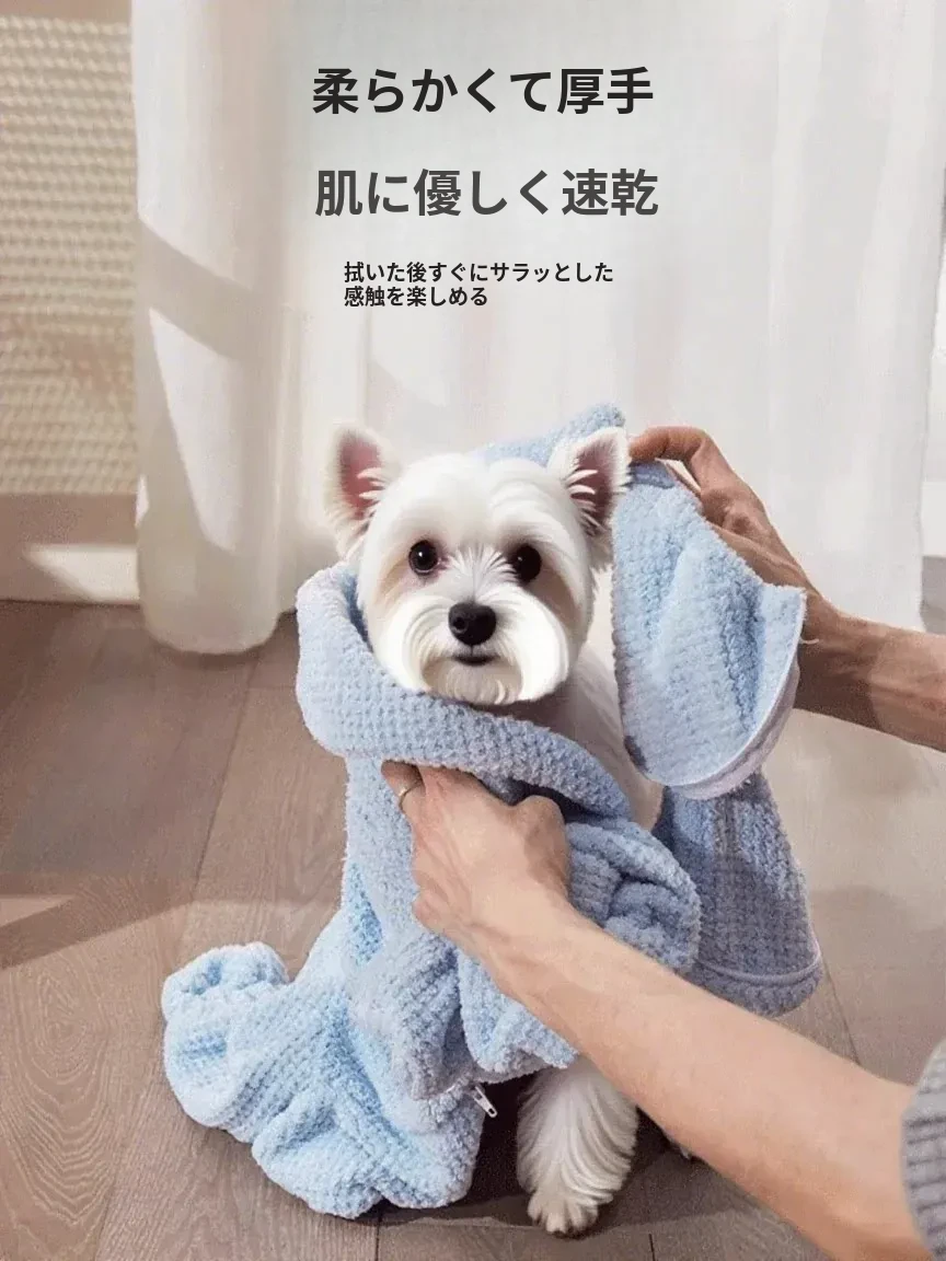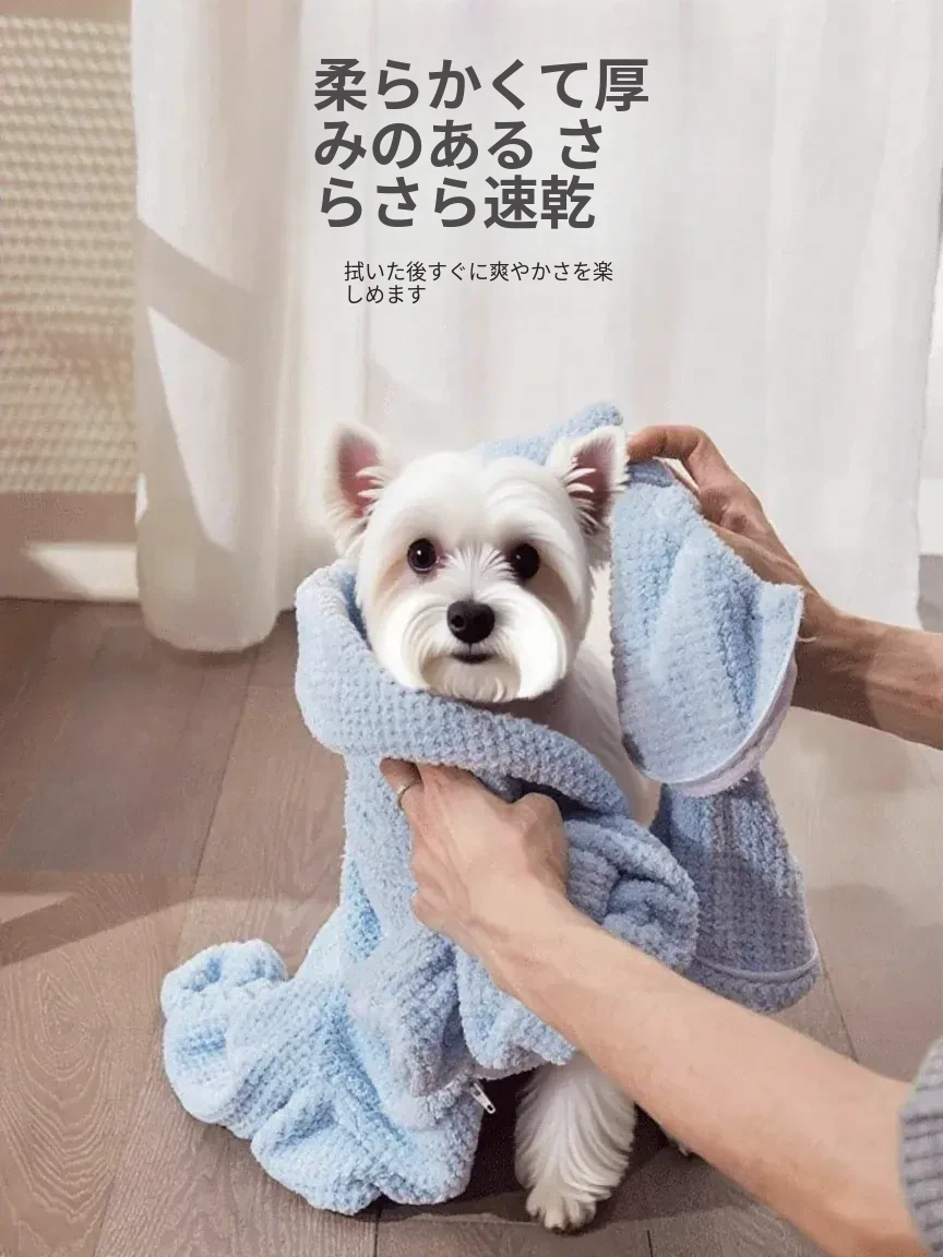ペット犬用吸水バスタオル - 厚手で速乾性抜群!大中型犬専用の全包囲タイプ、愛犬をしっかり包み込んで快適なお風呂タイムを実現!小型犬にも最適なバスローブ感覚で、毎日のケアが楽しくなります。